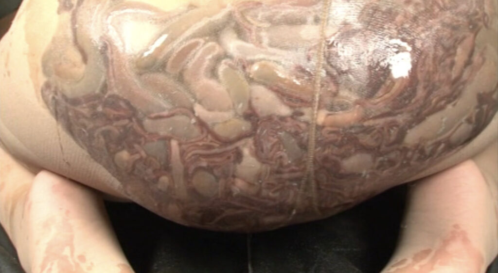 ストッキングの中で苦しそうに蠢くミミズ。足指、脛、太腿、内股を愛撫し、更に雌臭を放つ淫穴へ潜り込んでいく。肉襞を掻き分け挿入されるフラスコには大量のミミズが這い、子宮近くまで送り込まれ女の穴を弄ぶ。まさにミミズ千匹の膣穴!肉棒のようなユムシが潮を吹きながら挿入されるとウットリと乳を揉みしだく…。指でクスコで、棒で突かれ電マで陰核を擦られながら女はアクメに眩暈。蛆虫に阿鼻叫喚し、ユムシとミミズで再び昇天。鼻水と涙と汗と愛液…体液で全身を濡らしながらヌルヌルと長い虫に犯されていく女の貪婪さをとくとお愉しみあれ! DUGA