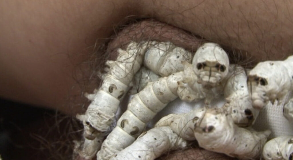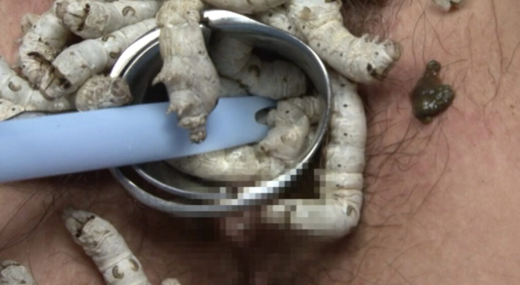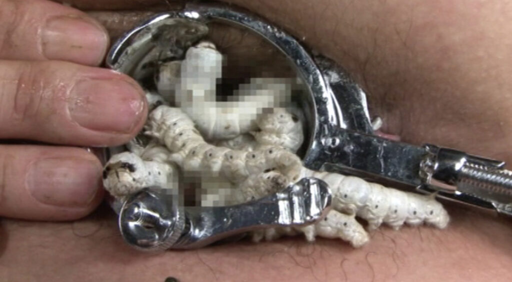 蚕が顔や胸をはじめとして、あそこやアナルに入っていきます。 特にあそこにはクスコを使いこれでもかというくらい入れていきます。 最初のパートで女優さんの顔出しがあるのも高評価です。ただこのシリーズについてはだいたいそうですが、挿入中の表情が見れないのは残念です。