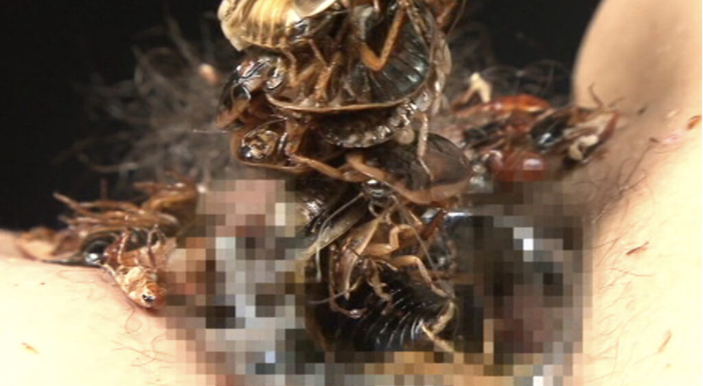 今回紹介する作品はイモムシやミミズ、ゴキブリなどの虫をマンコに大量投入したり、潰したりなどのオンパレードでエロではなくグロw