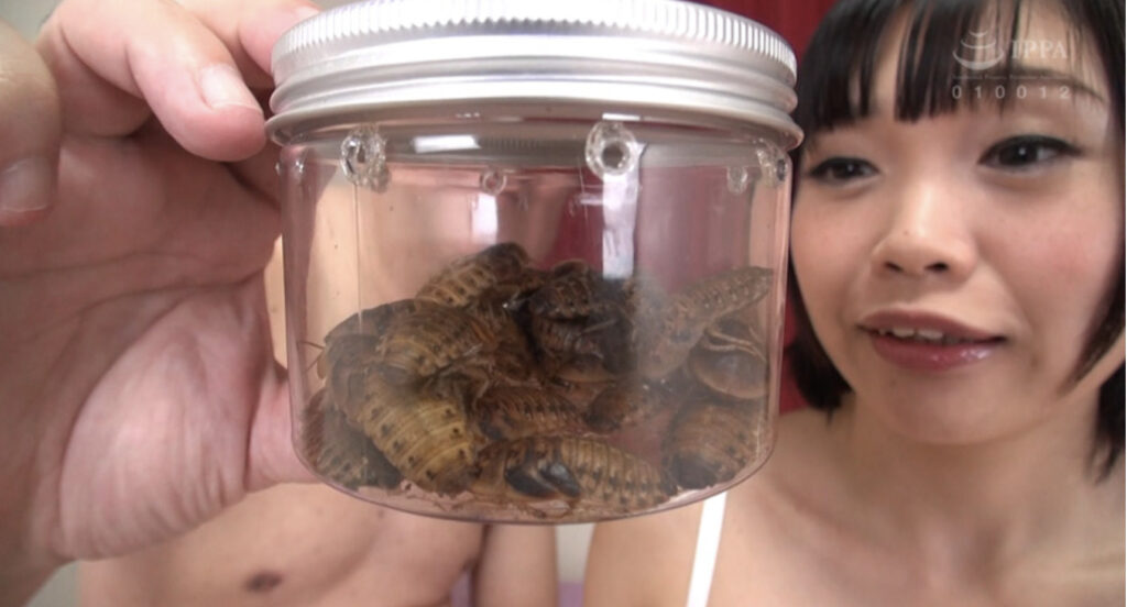 幼い頃から昆虫が大好きで、よくおやつ替わりに食べていたという衣織。大人になってからも、彼氏が出来ると昆虫食を勧めるが拒絶反応を示しフラれると言う(笑)本作ではカブト虫、ゲンゴロウ、スズムシ、ミルワームなどを咀嚼音と共にバリボリと噛砕き、男のザーメンを添えてゴックン。ラストは大量の生きたゴキブリにまみれながらのSEX。壮絶!閲覧注意!ここまで変な女見たことない!? DUGA