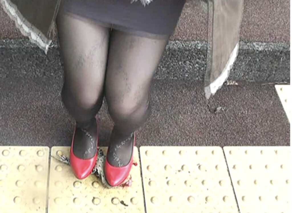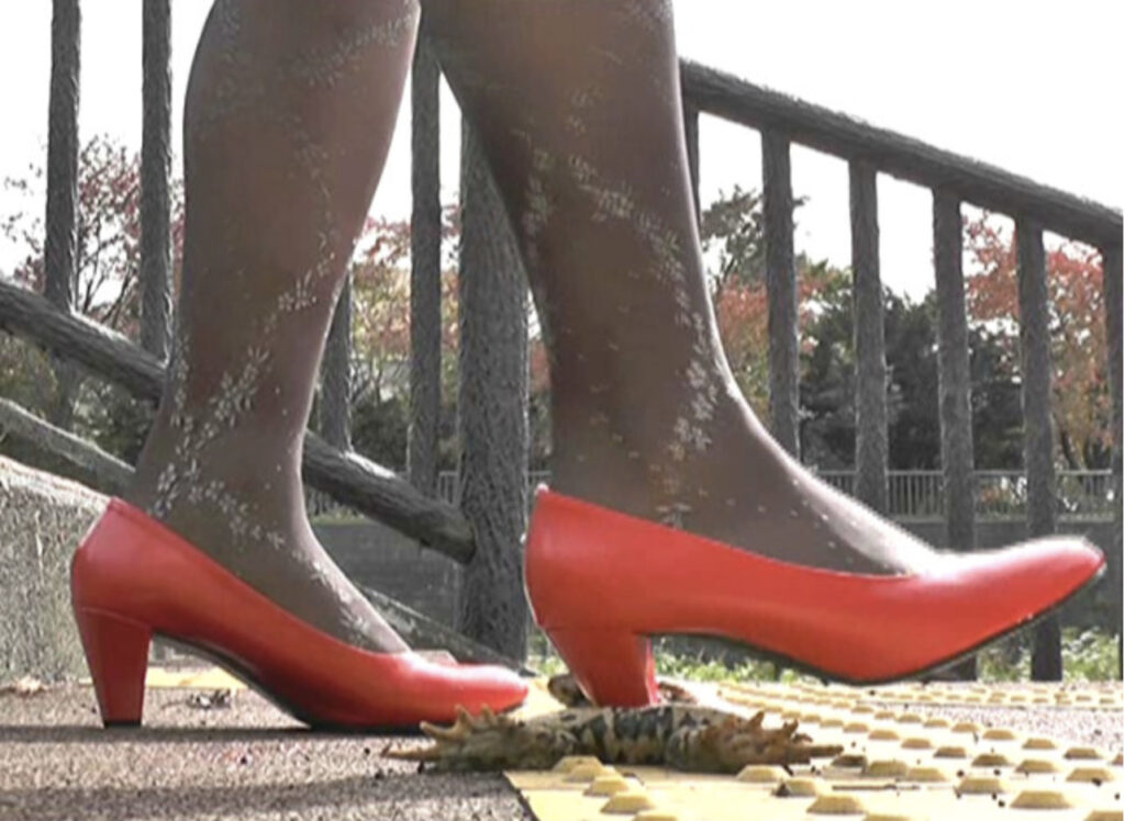 赤ハイヒールや黒パンプスのOLさんの脚線美の下で踏み潰されるヒキガエル!