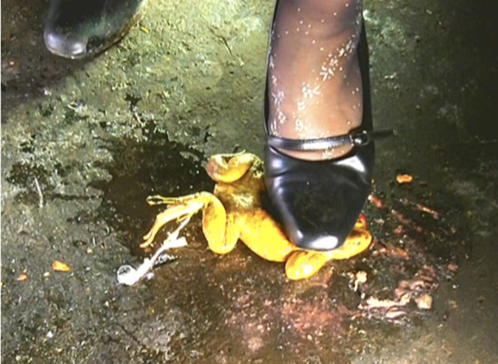 全編ヒキガエルのみ踏み潰し!【1】赤ハイヒール&黒パンプス+屋外での踏み潰し!屋外ならではのナチュラル感のある映像です。【2】赤ハイヒール&黒パンプス+ガレージ内での踏み潰し!ガレージ内の妖しい雰囲気の中で撮影しました。「天井に設置したカメラ」映像も。【3】ヒキガエルを「靴の中敷き」にして街中を歩く!どのようなプレイかは映像をごらん下さい。さらに足の指が透けて見える薄手ストッキングでヒキガエル踏み潰し!アクリル板の下から映像も!ヒールとストッキングと脚線美の色気。踏み潰しバリエーションの多彩さ。どれをとっても「ヒキガエル踏み潰しシリーズ」史上最高傑作です! DUGA