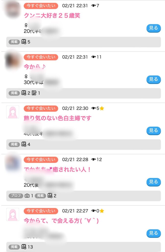まずはアダルト色の強い【その他掲示板】→【今すぐ会いたい】で検索してみると↑のように