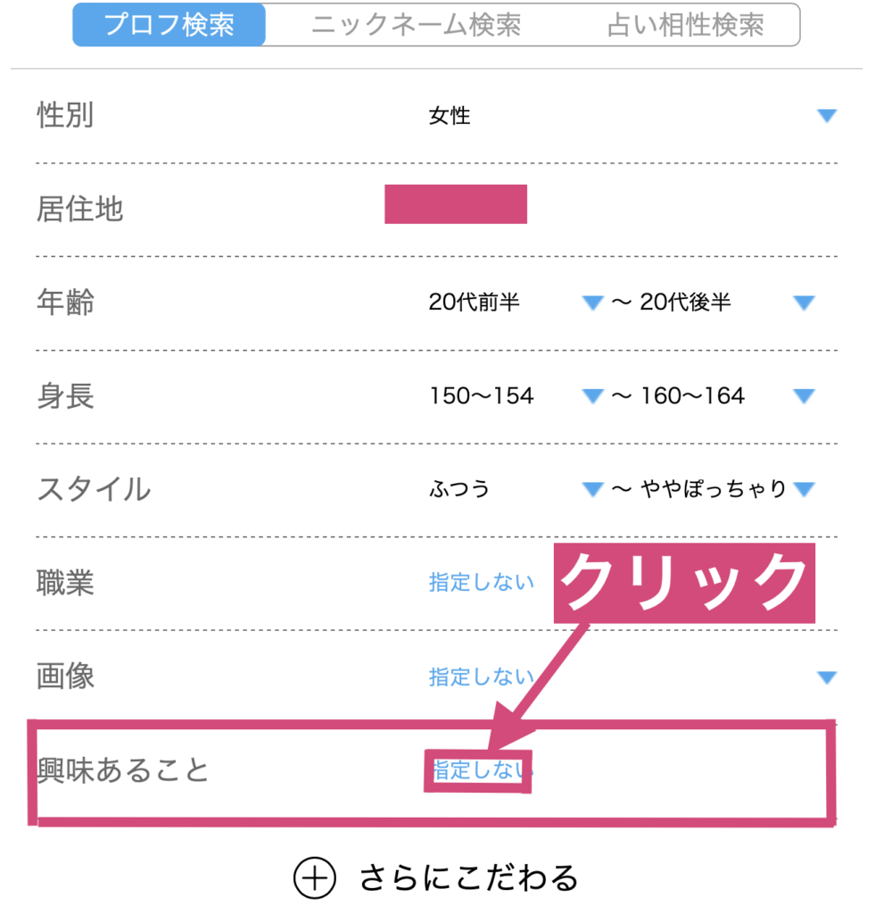 その中にある【興味あること(指定しない)】をクリックしてみよう〜!