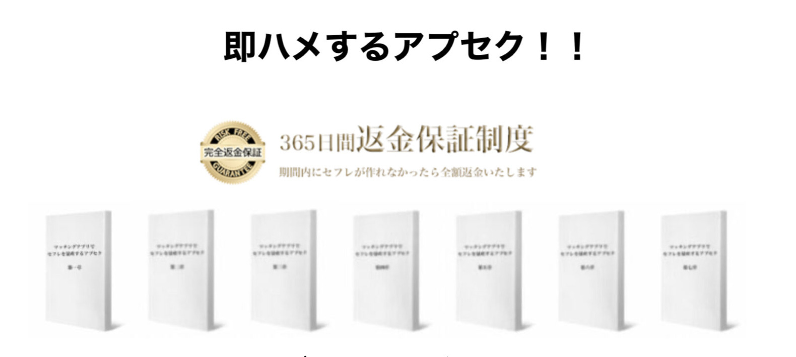 365日間、本マニュアルを内容通りに試して月3回以上サポートを受けたにも関わらず1人の女性ともセックスが出来なければ全額返金致します。 公式サイト