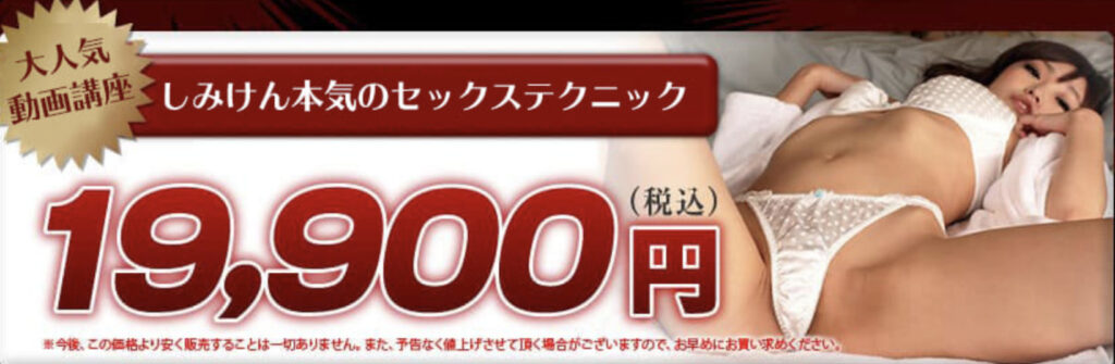 この教則DVD (価格:19,900円(税込))では現役トップレベルのセックステクニックを誇るしみけんがその技を動画で完全再現しており